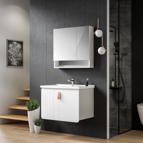 恒洁BC6076木合金浴室柜,让精致的高级感走进日常生活。以高级感迷迭白柜体为主调,点缀潮流家装元素,升级家居空间整体质感,为热爱生活的你提供焕新生活的美学享受。不仅拥有独具一格的简奢美学风格,更拥有创新木合金材质,为千万中国家庭带去全新浴室体验。温润如木,坚韧如金,柜面采用真空高压覆膜工艺,拥有如木质般温和细腻的3D触感,内置铝制六边形蜂窝增加柜体稳定性,更有防潮防霉,防裂耐用的功能。