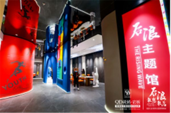 藉着峰会,QD“后浪”主题馆的首度亮相,大胆的色彩、弧形、浪花等元素,将QD一直以来所注重的“轻时尚”生活美学态度变现得淋漓尽致。从单片瓷砖到三维的空间展示,开启展厅设计新高度。新概念、新花色、新工艺和新空间展示设计方式悉数呈现,为消费者提供无界无限的美学生活灵感,获得QD经销商家人们的大加赞赏。