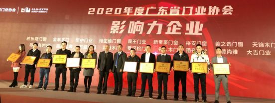 美之选门窗荣获2020年度广东省门业协会“影响力企业”