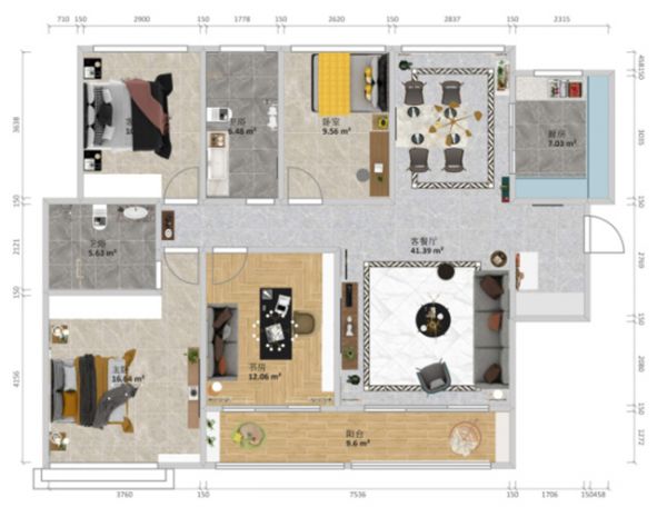 这套北欧风格的四居室,通过精心的硬装与软装、色彩与材质的搭配,呈现出清新雅致、温馨舒适的格调,让空间更具美感,尽显青春气息,深受年轻人喜爱。