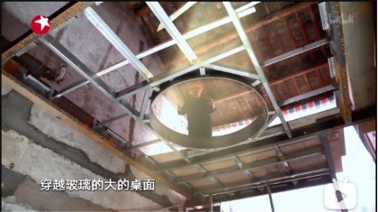 三楼把原来的小阁楼进行整改,作为张阿婆外孙女湉湉的画室,而小阁楼上的天窗,就是离太阳近的首层光照来源了!在小楼的第二层,设计师别出心裁的做了一个镂空的玻璃大圆桌,这样阳光就可以透过天窗和这个大圆桌,逐层放大光照面积,终照进底层的客厅。