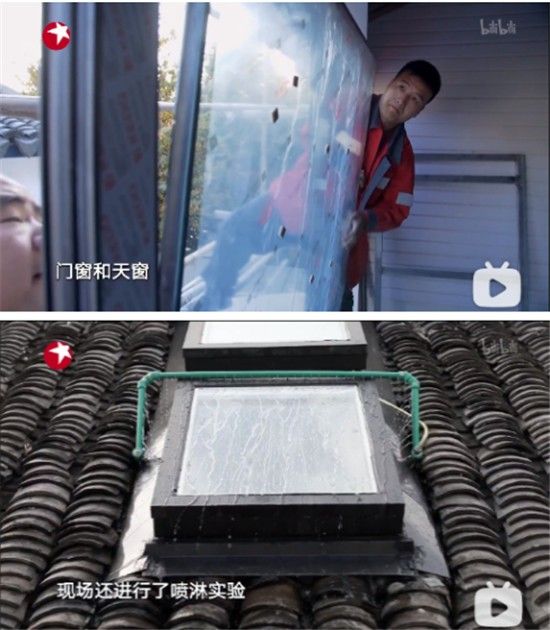 (左:科度门窗的工作人员在为张阿婆家安装特别定制的窗户;右:科度的“喷淋测试”)