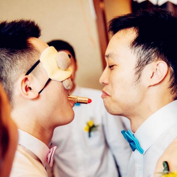 5、猜唇印,事先准备多份唇印,由新郎辨认哪份是属于自己媳妇的。
