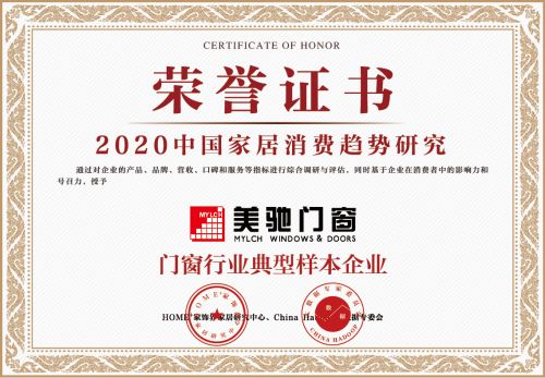 2021年1月27日,备受行业关注的2020中国家居消费趋势研究暨行业典型样本企业成果正式发布,美驰门窗入选2020中国家居消费趋势研究门窗行业典型样本企业,同时获得“2020消费趋势研究消费者喜爱的门窗品牌”荣誉。