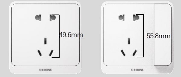 说到五孔插座,需要补充一些选购小技巧,这样才能在鱼龙混杂的开关插座市场上买到“真五孔”!理论上只有三级插座(底部二级)与二级插座间隙距离达到49mm以上,才能同时被使用,比如西门子远景Pro系列,就拥有超大五孔间距,五孔插座最远端达到49.6mm,五孔带开关的插座最远端更是达到了55.8mm,满足市面上绝大多数二、三插头同时使用。