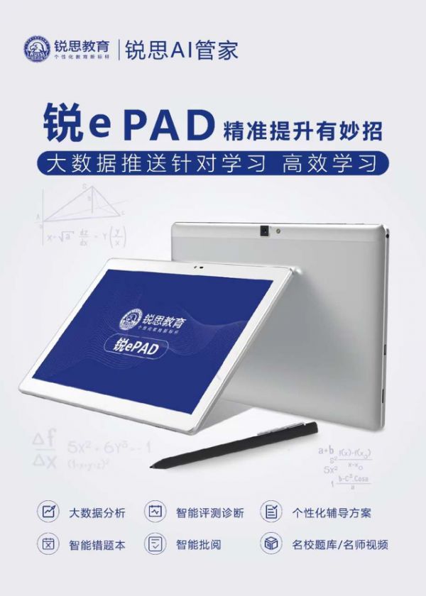 锐思教育自主研发的AI管家“锐思ePAD”正式上线,此系统用于学生不同阶段的个性化学习,含丰富的学习内容,覆盖初高中全学科知识,智能诊断学习问题,精准查漏补缺,实现错题天天清 缺漏日日学,从而提升个人成绩。