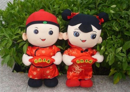 2、你还可以挑选一对毛绒的玩具,对于女生来说毛绒绒的布偶可以说是一种爱不释手,在新人的婚礼上送一对这个布偶也是非常有新意的,在陪朋友的新房里,放在新人房间这一对毛茸茸的布偶,不仅显得大气还能体现一种喜庆,但我们要选择红色的毛绒布偶这样才能增加一些喜庆。