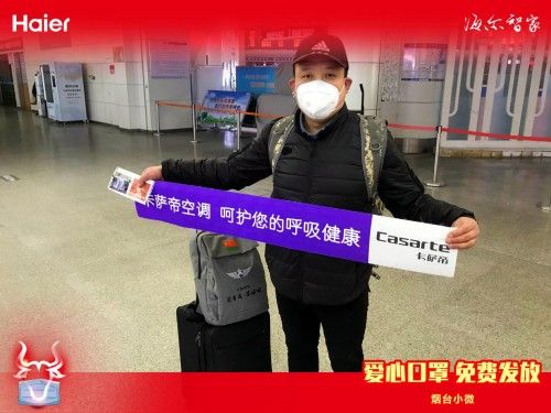 免费为烟台返乡人群提供热水补给及“爱心口罩”等物资