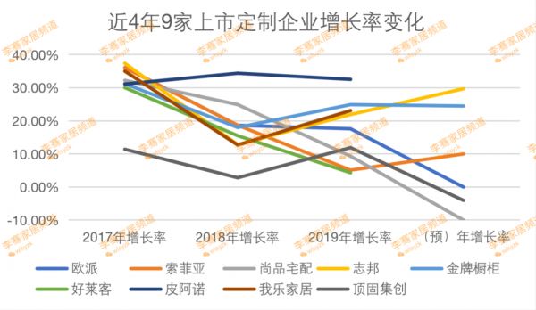 9家定制企业,2017年除了顶固之外,其他8家,统统实现了30%以上的增长,可谓壮观,随后3年,便开始出现了巨大分化。