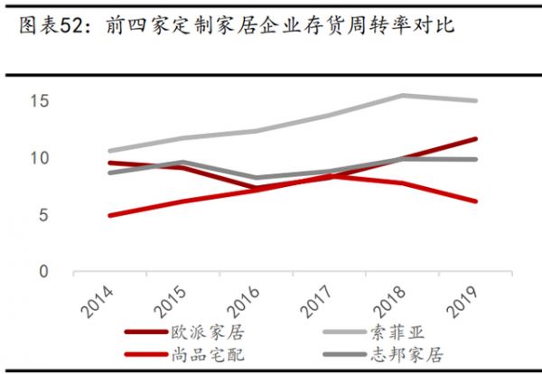 现金流情况:尚品宅配现金流情况较优。尚品宅配销售商品提供劳务收入的现金与营 业收入之比在四家公司中最高 2019 年达到 113%,欧派家居、索菲亚、志邦家居分别 为 110%/108%/104%。