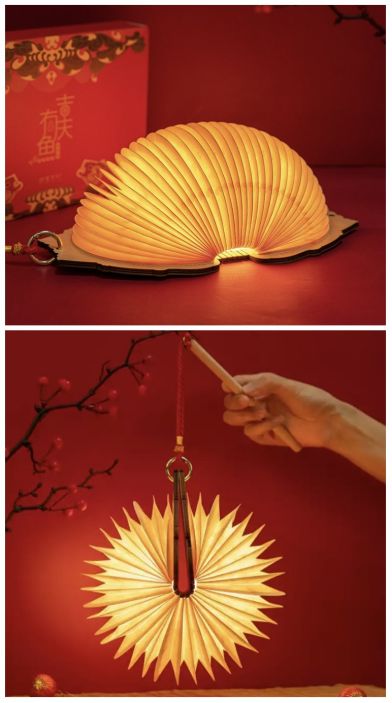 如果你想要一盏既可提在手里当花灯、又能摆于家中当装饰的元宵花灯,故宫文化吉庆有鱼书本灯是上佳选择。