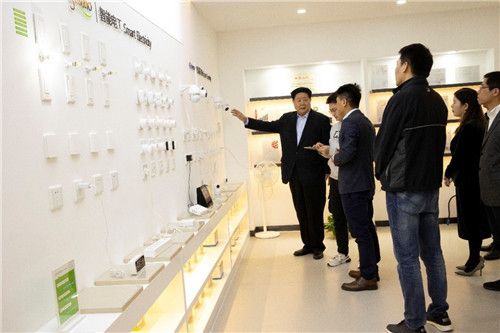 在智能家居展厅,陈才总经理向李子彬会长一行介绍了智能插座、智能开关、智能灯泡、智能灯带、智能安防摄像头等产品的特色和使用场景,并现场演示了语音控制、APP控制等便捷的功能,让大家亲身感受到科技带来的美好生活体验。