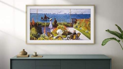 举例而言,在博物馆、美术馆等艺术空间,或者是艺术化家居设计空间中,有着庞大的艺术化屏幕展示需求,而传统的电视形态很难完美融入此类空间设计之中。三星针对此类需求,推出了The Frame画壁系列电视,采用艺术画框式设计理念,开启时它是一台电视机,关闭时它又是画廊中的一副画框,展示着极具标志性的传世画作。