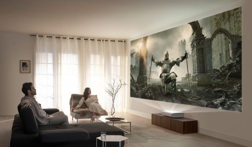 三星绚幕系列激光投影仪不仅支持130英寸的超大画面尺寸,更重要的是其还支持4K高清画质,搭配全色激光技术,让用户在家里也能享受到不输影院的超大屏高清视野。大多数投影仪要实现大尺寸画面投影时,都对投影距离有较高的要求,而三星绚幕系列激光投影仪支持超短距投影,机器距离墙面113mm时也能投出100英寸的超大画面,在当下的投影仪市场中是当之无愧的佼佼者。