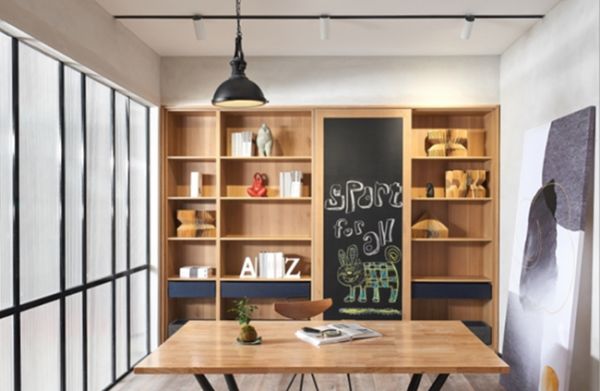 现代家居设计是极具包容性的,任何可能只要被需求,即有存在的必要性。无论是对有在家工作需求的大人,还是每日都有学习需求的孩子来说,那些千篇一律刻板的学习环境首先就给开始学习冠上了沉重的氛围。而柏厨家居北纬60°的解决方案是灵活而有趣的,或许它并不是传统意义上的书房,但不置可否的是这是一个有趣的创造工坊。首先他对家居空间大小的要求并不高,这意味着只要你愿意就能在家里还原这样一个小天地,满墙的落地式书柜让书房实至名归,大人的爱好,孩子的成长收藏,这里又何尝不能成为一个家的博物馆呢?可左右移动的黑板门,更像是孩子天马行空的画布,梦中的无限精彩在这里一一重现,最重要的是,写字、绘画亦或是手工,这一方小天地可不就是梦想起航的地方么!