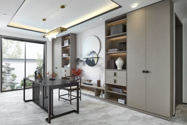 一个人的人生总是要通过忙碌才能实现人生价值,正因如此,那繁忙中的半日闲暇才格外有意味。“因过竹院逢僧话,又得浮生半日闲”,此时此刻书房何尝不是一个独处的最佳场所呢?这是柏厨家居中隐的解决方案,一个茶室和书房合二为一的空间,宠辱不惊,于模块式书柜闲看万千气象;去留无意,堂前啜饮一杯茶;清者自清,于茶几洗涤收纳区洗去尘浊,任凭天外风起云涌,自有一方清净。如今,人们对家居有了很多的定义和期望,尤其在住宅开发之时,很多曾经没有考虑过的生活需求都在逐渐走进大众生活,成为大多数家庭共同的选择,书房打造亦是如此,柏厨家居中隐所提供的家居空间打造方案就囊括了包含书房在内的大多数生活场景,以优质的产品质量和更高级别的审美标准,书写出东方美学生活的精髓。