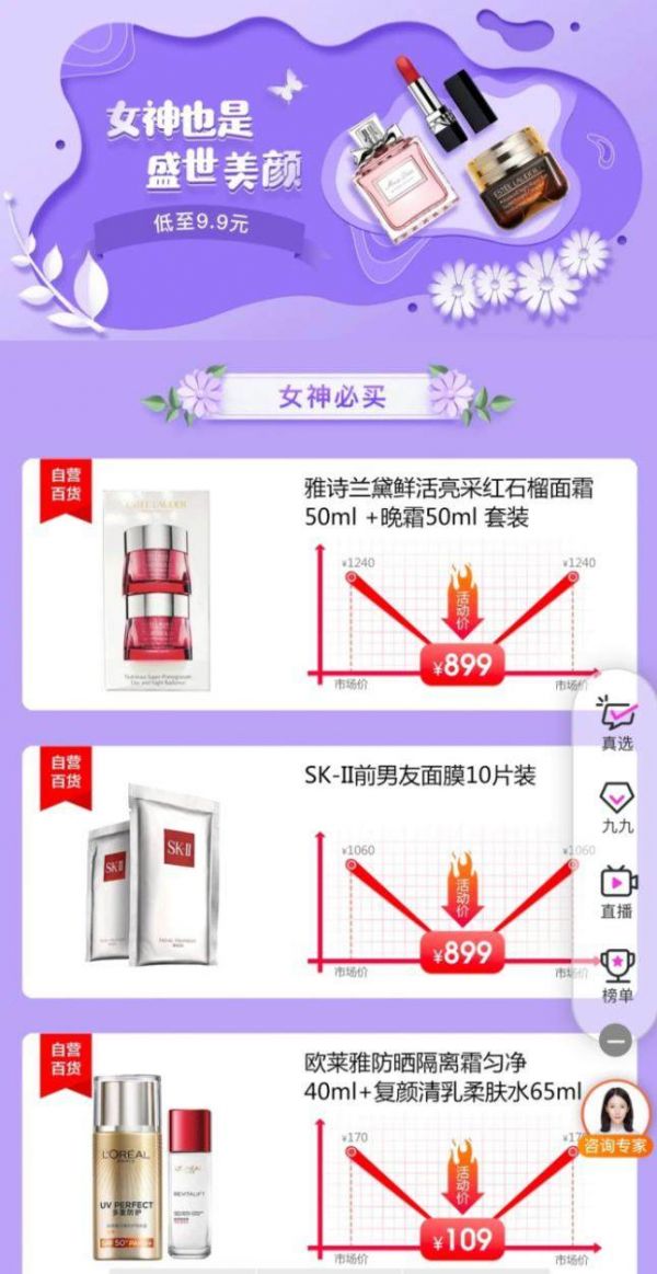 女神节上“真快乐”买美妆个护 热门好货低至9.9元