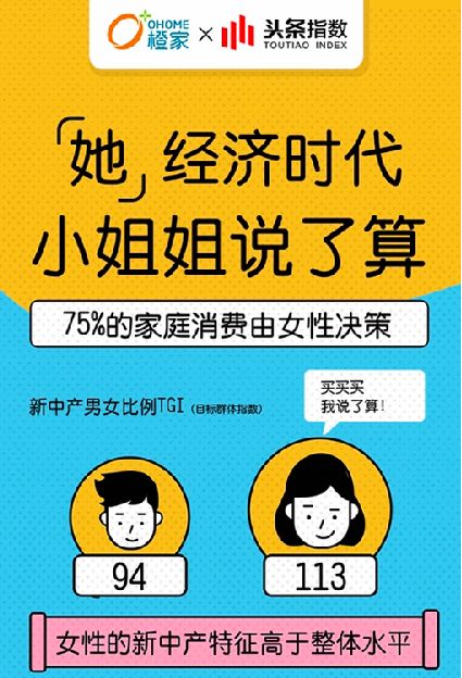 报告显示,在“她经济时代”,75%的家庭消费最终都是由女性决策。换言之,只要你能读懂新中产女性的消费心理,就能撬动新中产消费。