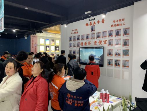 不得不佩服主办方有高人指点,或者说他们的策划水平高超!因为该店自称为建材新零售,是创新商业模式,就现场来看,的确如此:一站式购物、大牌建材直营、会员制、拼着买更便宜,这些在县城都是个顶个的创新。以上中国这么多的知名企业、明星式人物个个都是不同领域的创新杰出代表,向他们的创新精神致敬,是再贴切不过了。这是其一,其二,通过名人间接代言,向消费者传达着家寓户晓品牌也代表着创新,既然是创新,消费者就想一探究竟。从而达到了主办方从邀请消费者的难到吸引消费者的易的目的。此种神操作,不可谓不高。