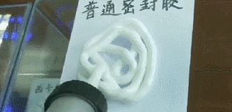 随后,在两张白纸上打上一支西卡魔力胶及一支普通的密封胶。