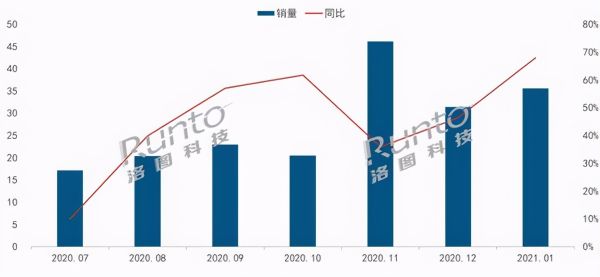 在LED光源产品品牌前五名当中,当贝投影作为新兴品牌高速增长。当贝是典型的软件企业入局硬件市场,虽产品推出时间短,但是基于当贝深耕大屏生态多年的丰富经验,使得当贝投影一经推出便广受好评,硬件业务增速迅猛,仅仅面世两年,就连续成为LED投影仪市场增速第一的新品牌,同时也是2020年度中国投影市场销售额增速第一,正以黑马之势不断刷新人们的眼球。在2021年1月,当贝投影销量同比超350%,在中国智能投影零售市场增速第一。