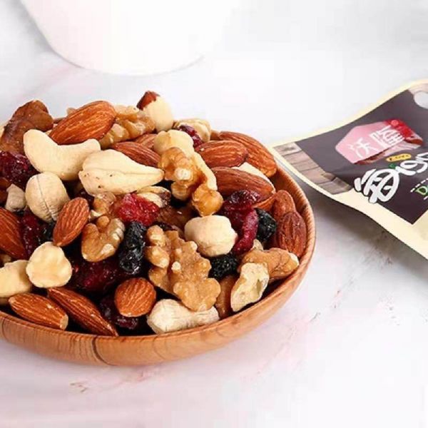 根据2016年《中国居民平衡膳食宝塔 》:中国居民每天膳食应食用大豆及坚果类食物25—35克。沃隆每日坚果就是将包含榛子仁、核桃仁、扁桃仁、腰果仁、蓝莓干和蔓越莓干等6种果仁果干,经过科学配比后,形成适合一天食用量的小包装。