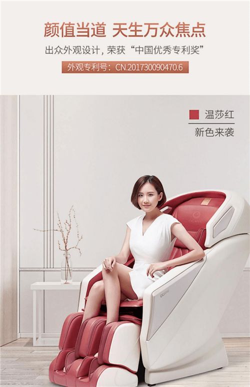 奥佳华OG-7505按摩椅没有成年人的“一亩三分地”,它只会用128cm加固型SL导轨和遍布全身的32个气囊使尽全力、毫无保留地拥抱你,让身体末梢也感受到“爱的力道”。同样,它也有着“不同凡响”的颜值,温莎红、活力橙和复古棕,三种时尚配色诉说着大气的、鲜活的、实用的按摩新时尚,这样出众的外观设计也让它荣获了“中国优秀专利奖”,这是因“爱”而得的荣誉。