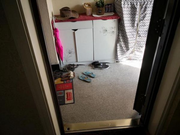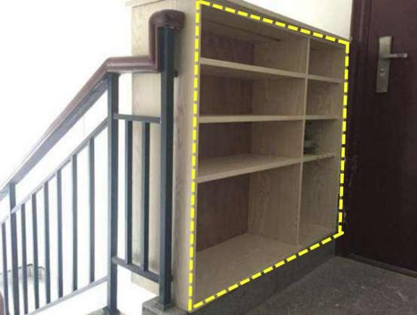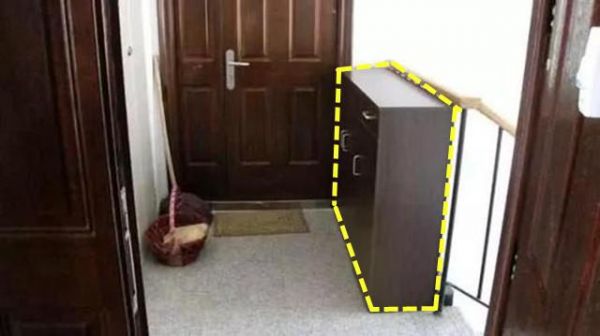 我住的是老小区,但是最近隔壁搬来了一户新邻居,平时也没怎么见到人。直到有一天,出门的时候突然发现他家的鞋柜居然是“悬空”放着的,顶上只用两根绳子固定住,搞得我每天上下楼梯都提心吊胆的。