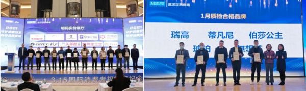 在3.15国际消费者权益日活动现场,武汉市消费者协会秘书长肖诗新、武汉市硚口区宗关市场监管所所长陈飞、湖北省质量监督检验研究院主任王月兰受邀出席;红星美凯龙湖北省营发中心总经理梁海楠,红星美凯龙集团营运管理中心总监许结,红星美凯龙集团营运中心总监乔晓琦,红星美凯龙湖北省营发中心营运部长王波,红星美凯龙武汉汉西商场总经理刘泽敏总及媒体记者和红星美凯龙共计60余位经销商共同出席了本次会议,为红星美凯龙武汉汉西商场在2020年诚信经营工作中树标杆作用的商户进行了荣誉颁发,分别有:质检合规品牌、零投诉品牌、明码实价品牌、2020年度优秀经销商。