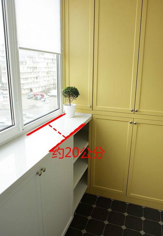 邻居心灵手巧,连阳台窗户下都不放过,打排20公分柜子超实用!