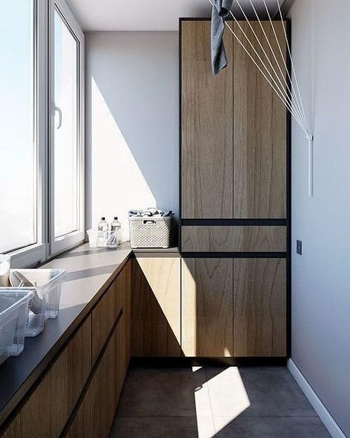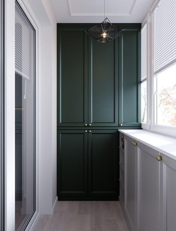 在阳台打柜子,我们通常都是在过道尽头的2侧,靠左或靠右做文章,而邻居家对于阳台空间的利用,可谓更“心狠手辣”,左、右不仅打上了顶天立地的储物柜,连窗户下面都不放过,沿着墙壁也打上了一排约20cm宽的柜子↓