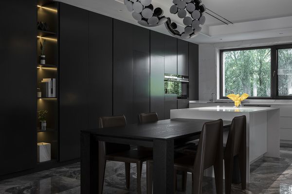 其实,项目的设计在三四年前就完成了,当时国内、尤其是东北的设计师都还在做美式,该项目不论是空间布局,还是色调、软装等,在当时都还是很前卫的。因为我经常到处跑,在设计趋势的潜移默化中,就想做一个这样的空间。而且我认为很适合业主,一个是舞台剧编剧,一个是大学舞蹈老师,都是偏艺术的。果然,我们一拍即合。