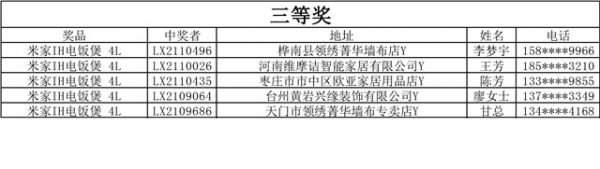 (3月15日 第二轮中奖名单)