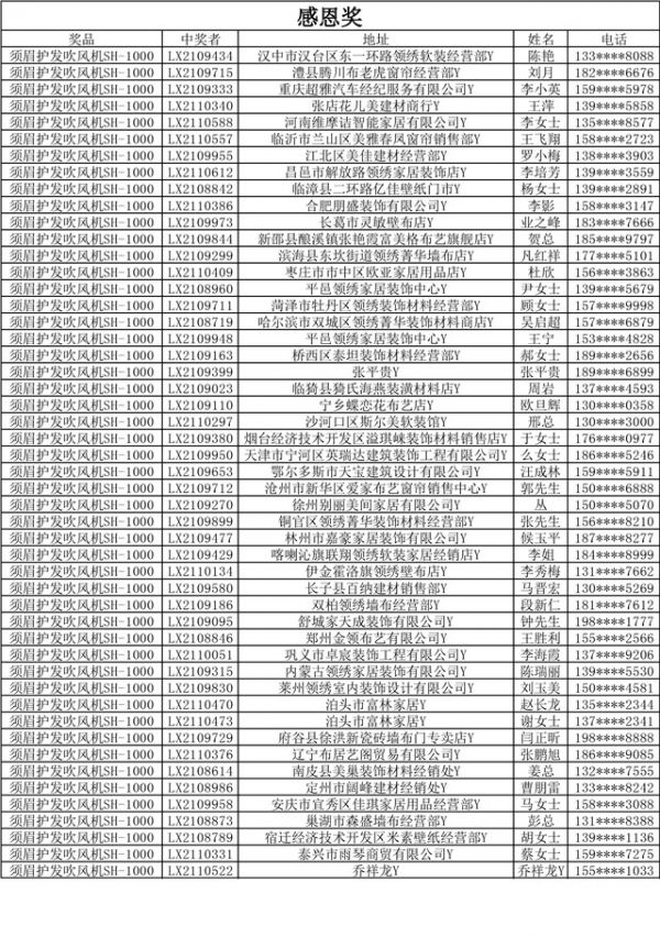 看看有哪些幸运儿中奖