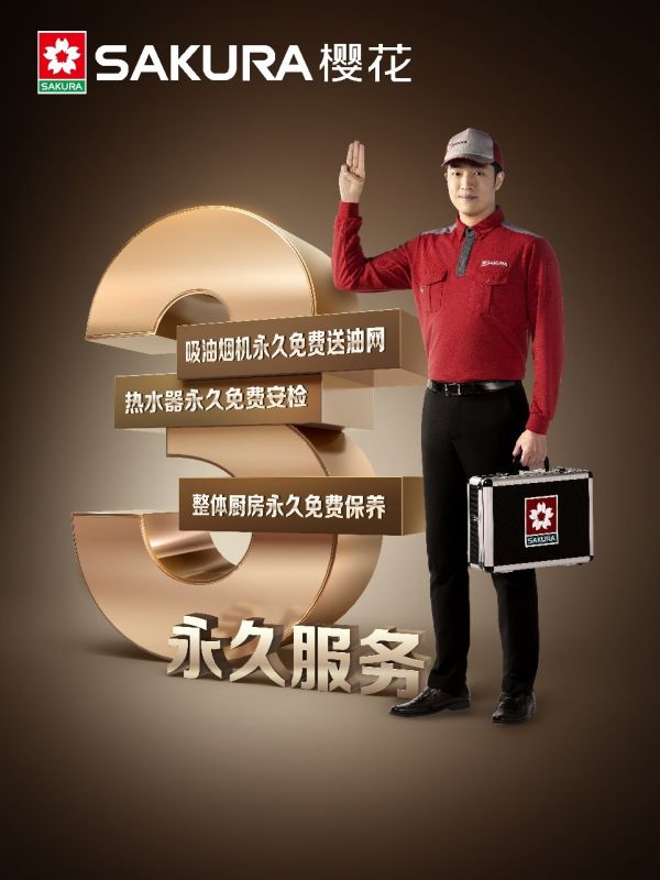 SAKURA樱花始终以满足消费者权益为依归,为更好的服务消费者,自1978年成立之初,樱花就开始实行吸油烟机“永久免费送油网”服务;1986年实行热水器“永久免费安全检查”服务;同时,整体厨房实行“永久免费保养”服务。这三项“永久”服务承诺每年都在持续进行,消费者有口皆碑,成为了商业史上不可多得的信誉典范。