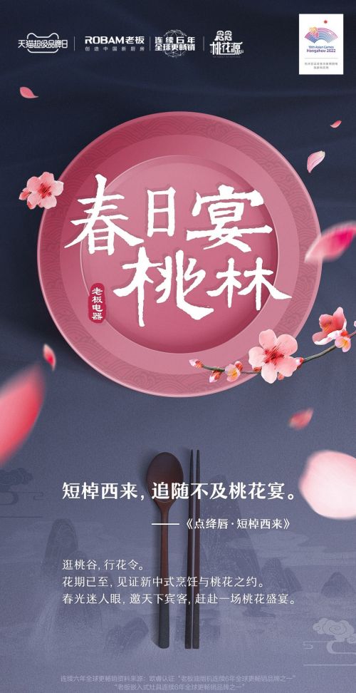 今年3月21日天猫超级品牌日,老板电器将再次邀请宋威龙本色出任桃花男神,在浙江临安开启一场醉人心神的浪漫桃花宴。与此同时,通过现场直播,不光现场来宾可以近距离赏桃花景、论桃花诗、品桃花宴,全网用户皆可通过网络参与到这场全民狂欢中来,沉浸式享受颜值主义时代的中式厨电美学!