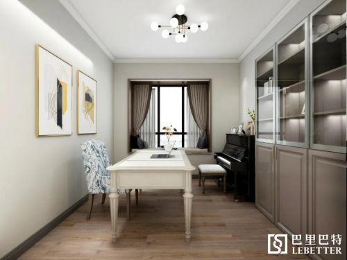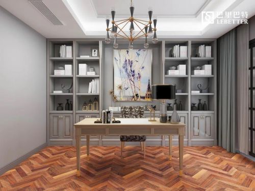 美式书房最重要的是实用性,但装修方面没有歧义。各种软装饰都是美式古典书房的受欢迎元素,如各种绿色植物、复古风格的枕头、酒柜以及各种配饰,都能为您的美式书房增添一分以上的亮点。一方面,如此丰富的装饰可以不乱地融入其中,这也是美式风格包容性的体现。