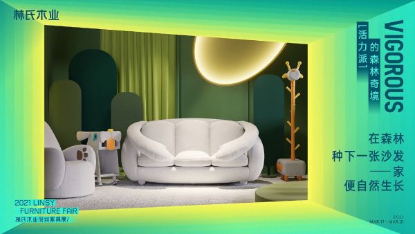 此次除了年轻新潮的人格化空间展馆外,林氏木业更以“第二现场”打造最IN的潮流品牌直播间,通过直播形式对话年轻人实现产品种草和品牌曝光。直播间空间设计上采用“森林奇景”为创意主题,沉浸式场景搭配萌宠系列家具传递人与自然共生共融的环保理念和绿色健康品质家居生活体验。