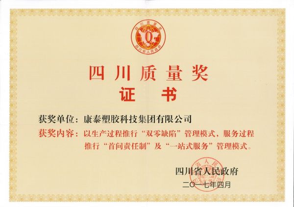 作为一家专注生态管道工程系统整体解决方案的集团企业,康泰集团始终注重产品的质量的提升和把控,始终注重向智能化、系统化、生态化以及用户体验感创新升级。在其成长的20年间,康泰先后获得“中国轻工业百强企业”、“中国塑胶建材行业十大品牌”、“中国房地产开发企业500强首选供应商”、“政府采购塑料管道十大品牌”、“四川省优秀品牌企业”、“成都市百强民营企业”等荣誉。不仅康泰的品牌知名度已经家喻户晓,而且康泰的产品质量也是经得起检验的。