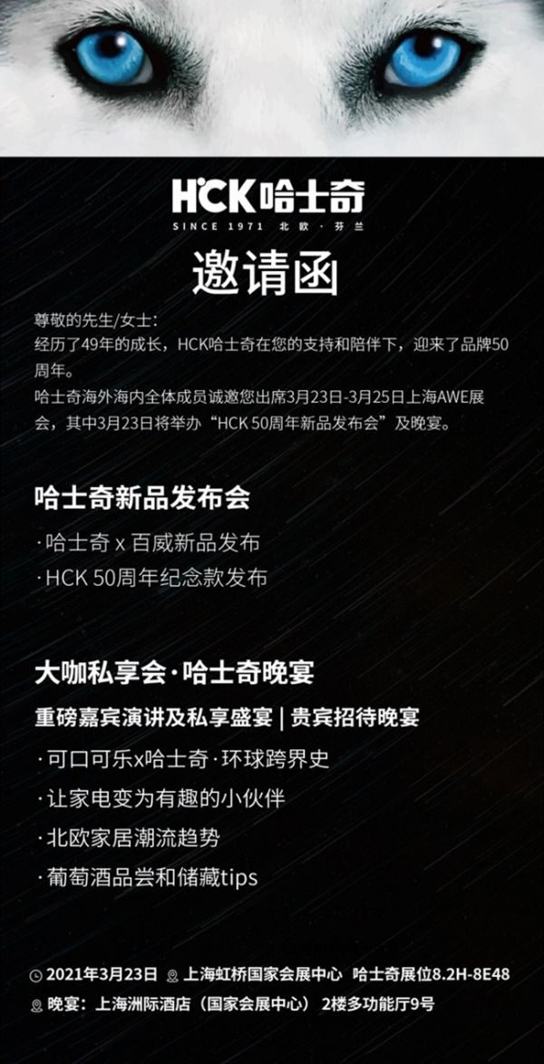作为复古冰箱领域引领者,HCK哈士奇将亮相于AWE2021,期间将举办HCK50周年新品发布会及大咖私享会·哈士奇晚宴。