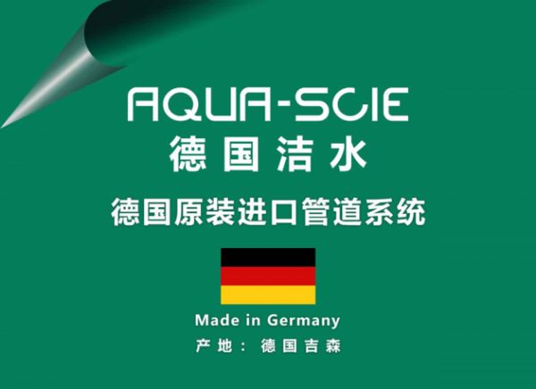 德国洁水(AQUA-SCIE)总部位于德国吉森,主要生产用于民用的给水用PPR管道系统和采暖管道系统。1969年始创PP-R管道,通过几十年的研发和生产,德国洁水(AQUA-SCIE)在塑料管道系统领域积累了丰富的经验和生产的技术优势, 1998年,德国洁水(AQUA-SCIE)率先将PP-R管道系统引入中国市场,并一直领跑国内PP-R高端管道市场。几十年来,德国洁水(AQUA-SCIE)已成为中国客户心中的知名品牌,并享有PP-R管道系统的“劳斯莱斯”之称。