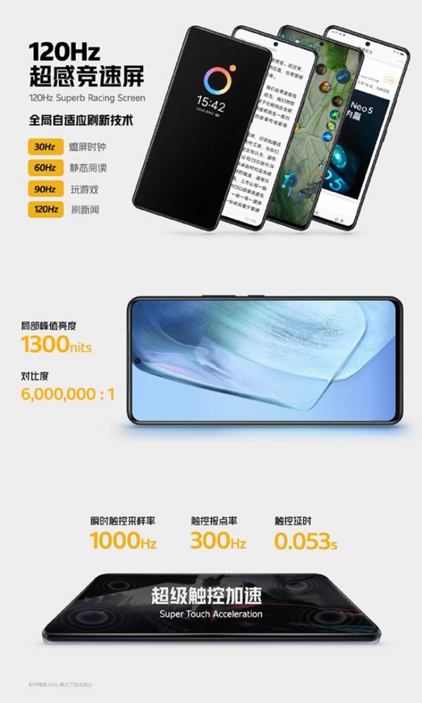屏幕方面iQOO Neo5采用了一块6.62英寸的AMOLED屏幕,虽然是E3发光材料,但是iQOO将这块屏幕调教的非常好,JNCD约等于0.39,ΔE约等于0.49,色彩准确度可以说是非常的高。另外这块屏幕还支持120Hz刷新率,瞬时采样率高达1000Hz,外加定制的双扬声器和Hi-Res认证,iQOO Neo5不管是玩游戏还是看视频都能得到不错的体验。
