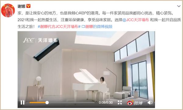 3月16日,#谢娜代言天洋墙布#话题冲上热搜,#谢娜同款#也迅速火出圈,谢娜发博谈到:"家,是让我安心的地方,也是我倾心呵护的港湾。每一件家装用品我都用心挑选,精心装饰。2021和我一起热爱生活,注重健康环保,享受品味家居",我们不难看出,谢娜选择代言也是精挑细选,全心力投入在家庭中,颇为幸福。