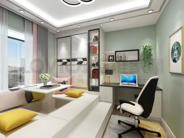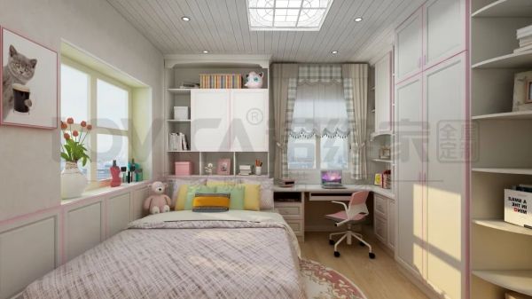 女儿房搭配孩子喜欢的粉色打造出可爱的公主房,整个空间都显得格外的素雅温暖。床头储物柜与衣柜的开放格+封闭式柜,集多功能于一体,实用美观。