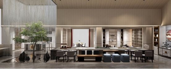 江南水乡空间是以新中式演绎别样的国潮魅力,摈弃外在的浮华虚无,倡导对人的心理和生理的关怀,让“设计力”回归“生活力”,打造一种自然相融,酿造生活的美好。