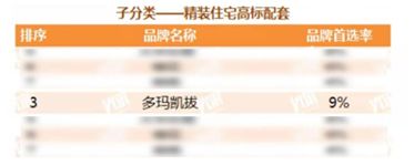 多玛凯拔品牌以9%的品牌首选率,在首选安装设备类品牌 - 智能门锁类的精装住宅高标配套子分类中获得供应商品牌首选率第三名。
