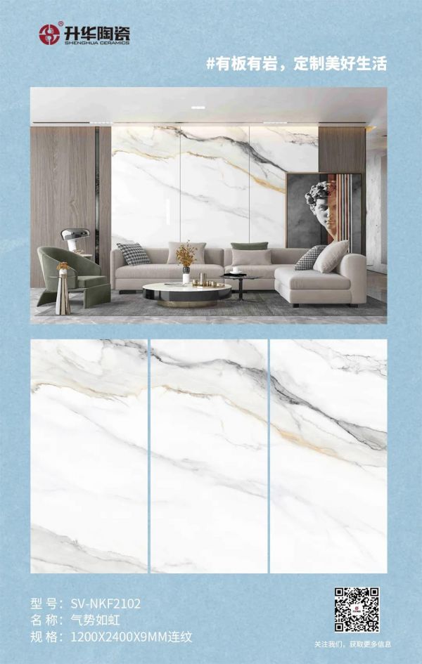 平庸与精致,往往只需一点巧妙的设计。如果你也想拥有一面高颜值,提升空间美感的背景墙,不妨试试升华陶瓷1200×2400×9mm连纹岩板,无限连接的纹理搭配自然细腻的质感,美出新高度的背景墙,让你寻回生活的热情,享受有温度的艺术空间。