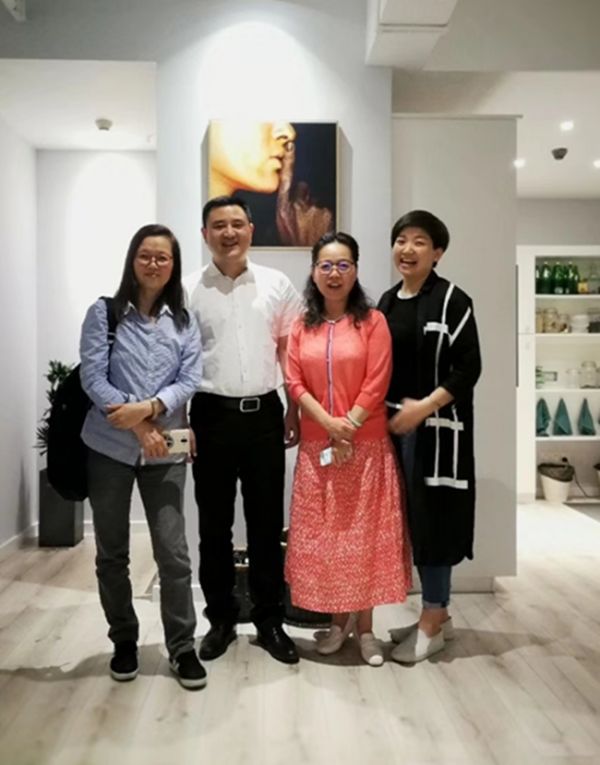 左一/右二:成都市建筑装饰协会张代莹、严静;左二:十二峰裳创始人陈永峰;右一:十二峰裳研发中心总监许娟娟