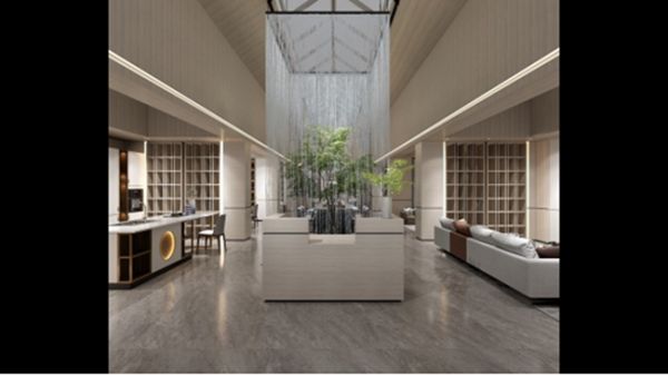 在色彩描绘上,以淡雅的月牙白为底,饰以回纹金茶玻璃,尤加利木纹,精致灯芯玻璃,软装配以轻纱、竹林,将自然吸纳为设计的元素并以艺术去重组它,创造出静谧雅致的隐居形态及生活方式。
