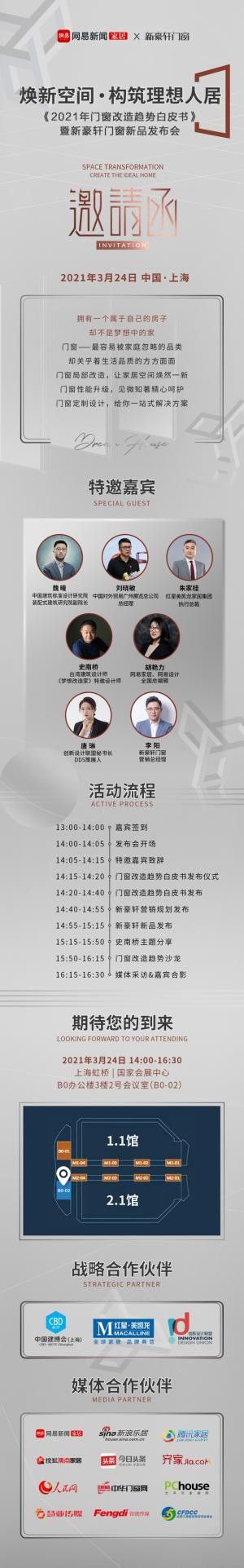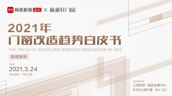 网易作为有态度的媒体,联合门窗头部品牌新豪轩门窗,挖掘门窗消费需求,深度剖析门窗改造趋势,《2021年门窗改造趋势白皮书》将在活动现场重磅发布。